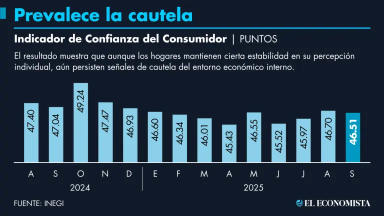 El ICC es un indicador clave que mide la percepción de los consumidores sobre su situación económica actual y futura, así como su disposición a realizar compras. En octubre, el ICC reportó una disminución de 0.3 unidades, situándose en 46.14 puntos, según cifras ajustadas por estacionalidad. Este descenso es significativo, ya que marca la continuación de una tendencia a la baja que se ha observado durante dos meses consecutivos.