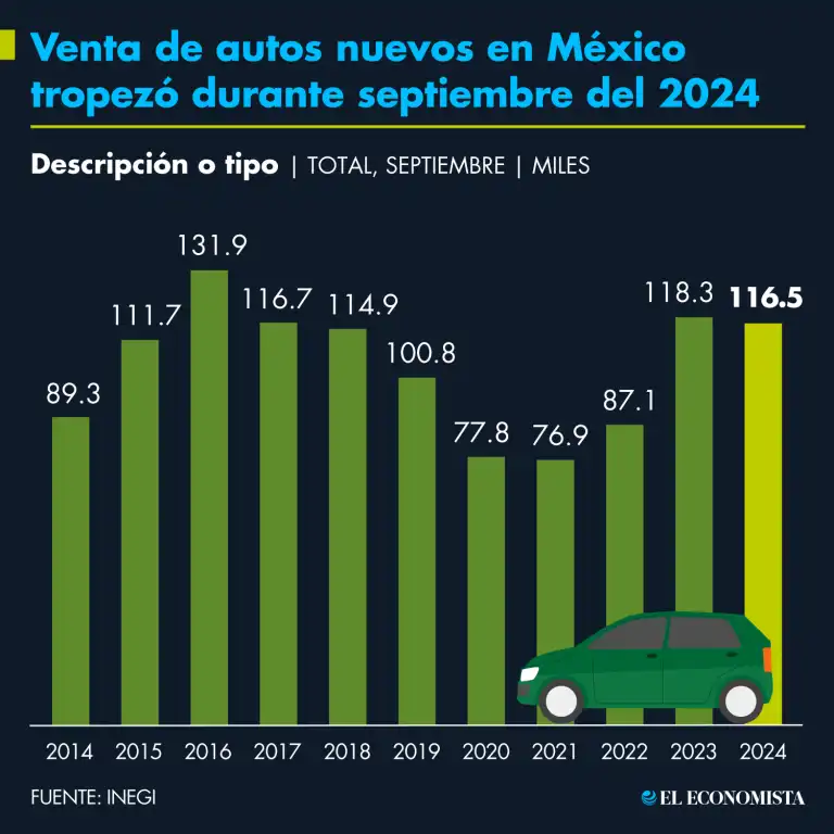 El mercado automotriz en México ha mostrado un ligero crecimiento en la venta de autos nuevos durante el mes de septiembre de 2025. Según datos proporcionados por el Instituto Nacional de Estadística y Geografía (Inegi), se comercializaron un total de 117,182 vehículos nuevos, lo que representa un aumento del 0.3% en comparación con el mismo mes del año anterior. Sin embargo, al analizar el periodo de enero a septiembre, las cifras indican una disminución del 0.6% en las ventas totales, con un total de un millón 075 mil 188 unidades vendidas.